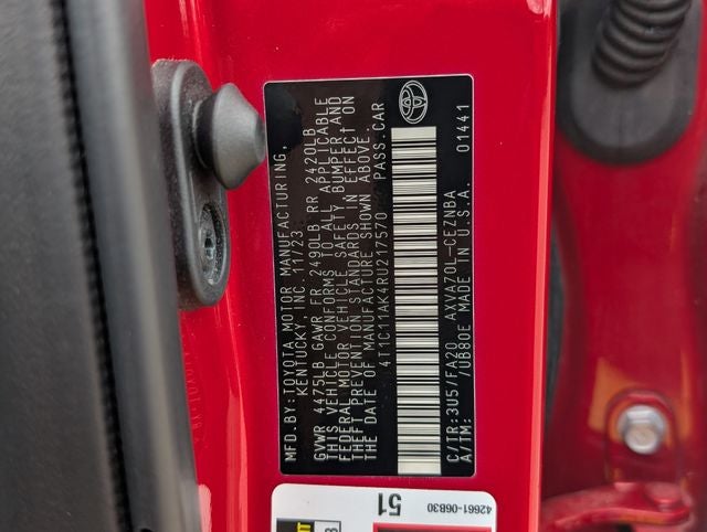 Cloth, 4-Wheel Disc Brakes, 6 Speakers, ABS brakes, Air Conditioning, Alloy wheels, AM/FM radio: SiriusXM, Apple CarPlay/Android Auto, Auto High-beam Headlights, Automatic temperature control, Brake assist, Bumpers: body-color, Delay-off headlights, Driver door bin, Driver vanity mirror, Dual front impact airbags, Dual front side impact airbags, Electronic Stability Control, Emergency communication system: Safety Connect (1-year trial), Exterior Parking Camera Rear, Fabric Seat Trim, Four wheel independent suspension, Front anti-roll bar, Front Bucket Seats, Front Center Armrest, Front dual zone A/C, Front reading lights, Fully automatic headlights, Illuminated entry, Knee airbag, Low tire pressure warning, Occupant sensing airbag, Outside temperature display, Overhead airbag, Overhead console, Panic alarm, Passenger door bin, Passenger vanity mirror, Power door mirrors, Power driver seat, Power steering, Power windows, Radio data system, Radio: Audio, Rear anti-roll bar, Rear seat center armrest, Rear side impact airbag, Rear window defroster, Remote keyless entry, Security system, Speed control, Speed-sensing steering, Split folding rear seat, Steering wheel mounted audio controls, Tachometer, Telescoping steering wheel, Tilt steering wheel, Traction control, Trip computer, Variably intermittent wipers, and Wheels: 17 x 7.5J Alloy.